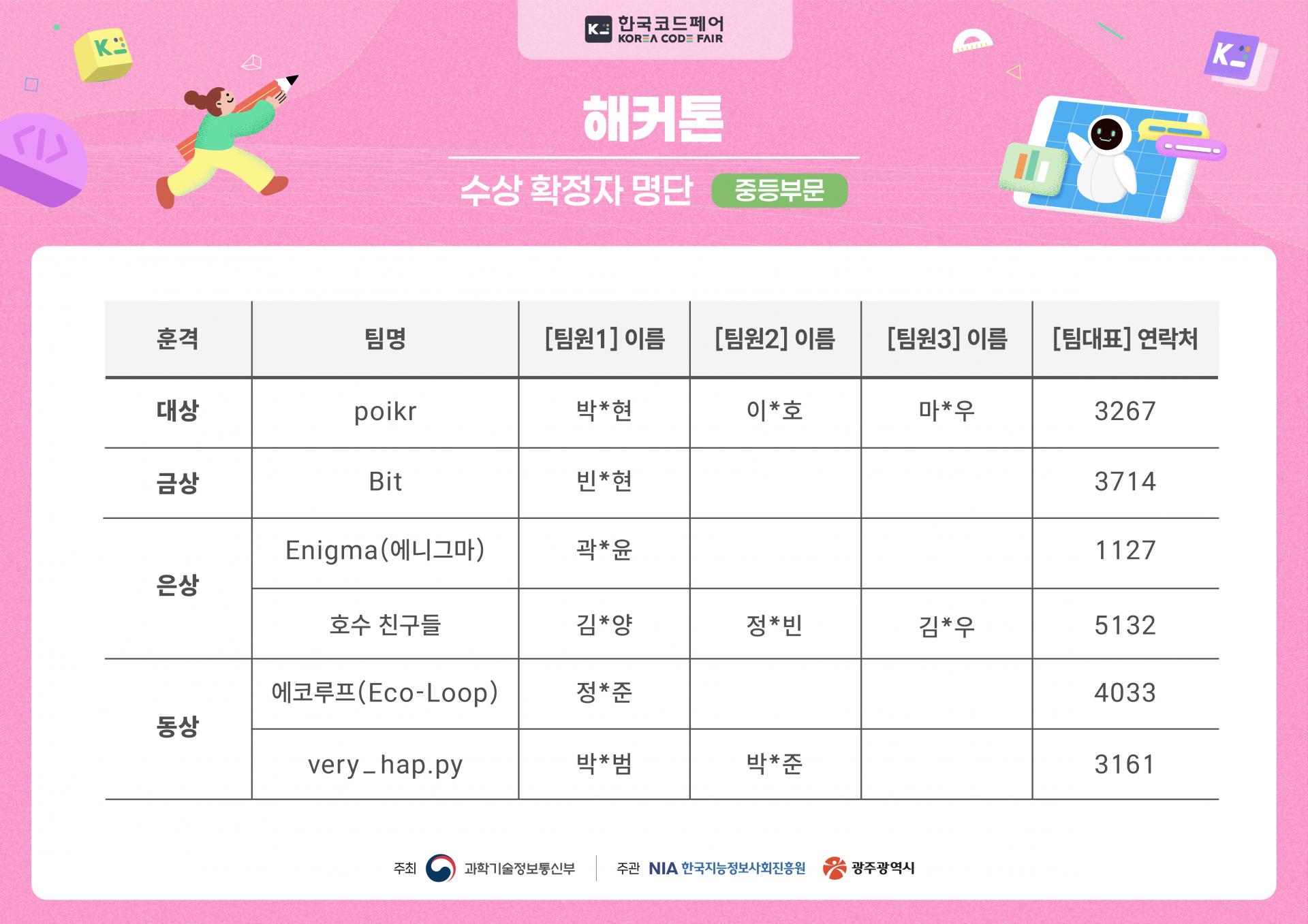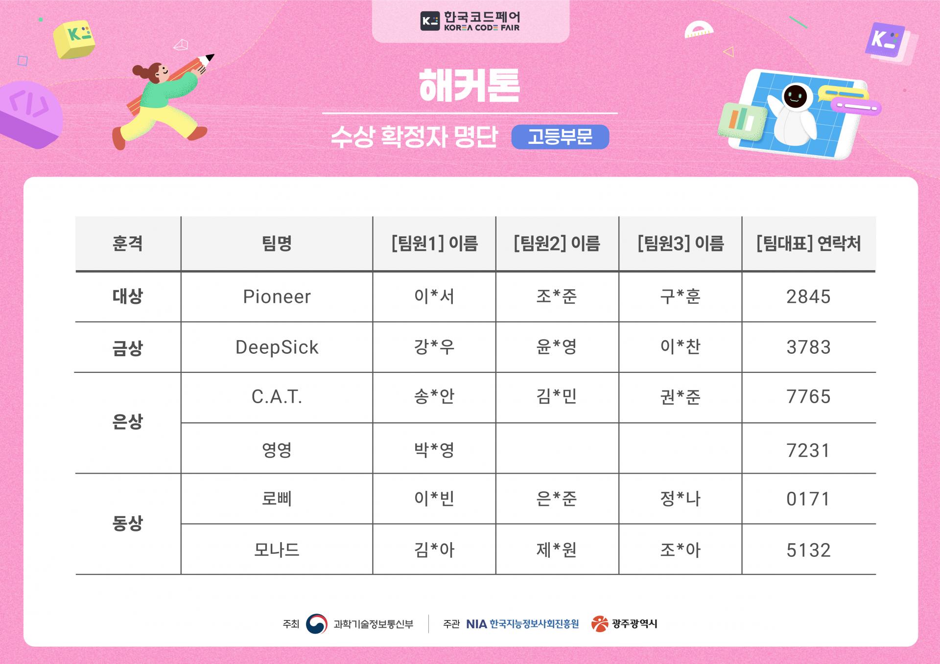 해커톤 수상자를 아래와 같이 안내드리오니 확인해주시기 바랍니다.