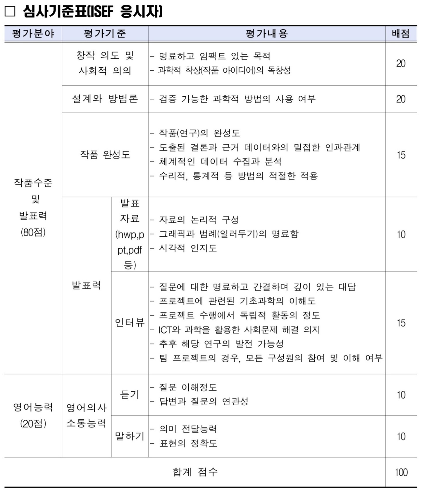 ✅ISEF 심사 기준표