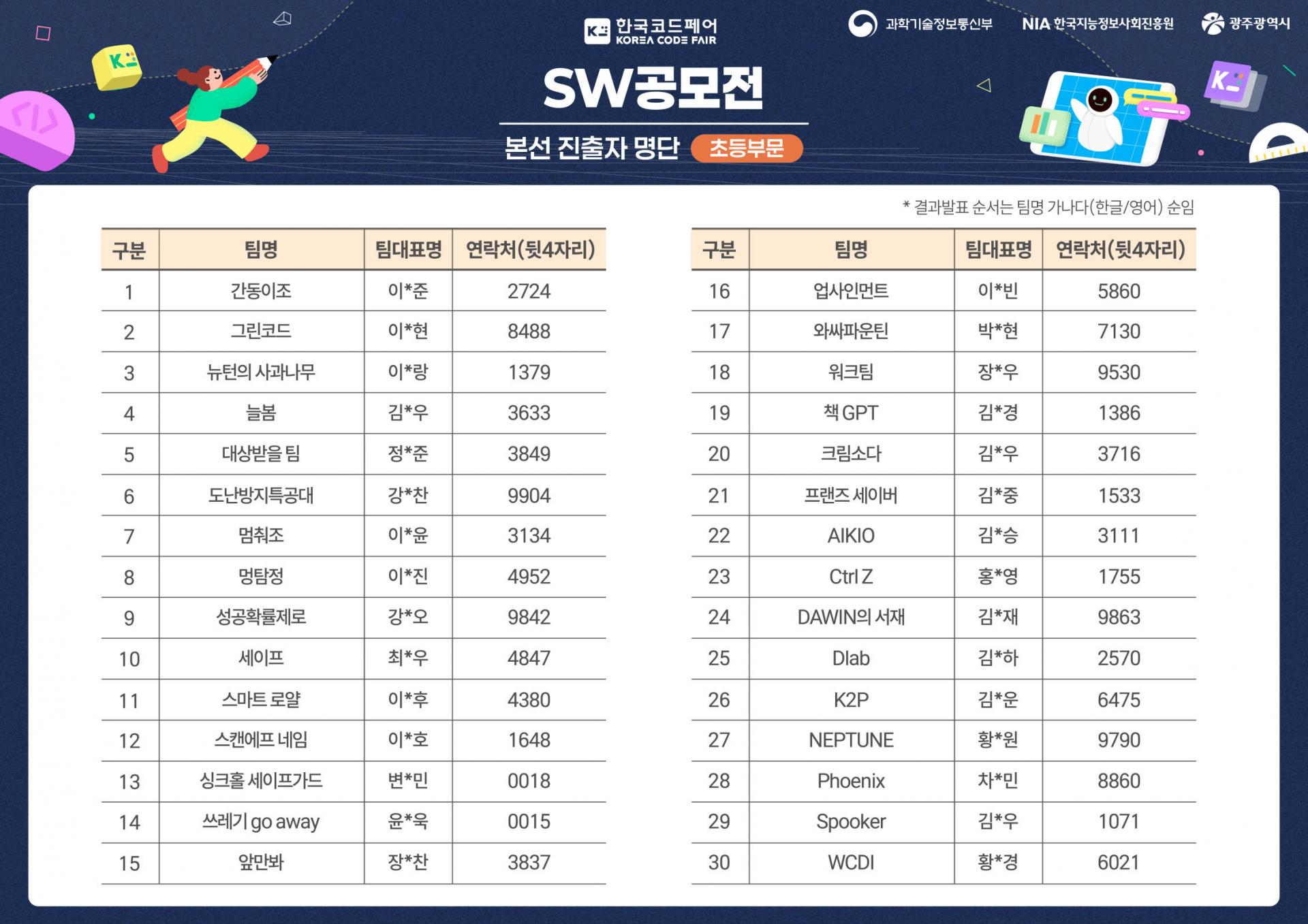 ※심사 결과 발표는 팀명 가나다(한글/영어) 순입니다.