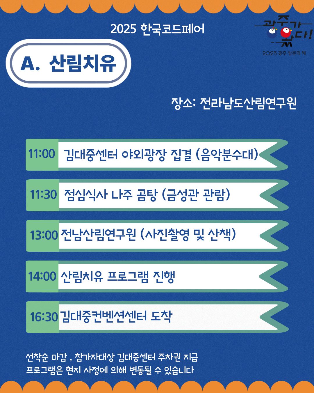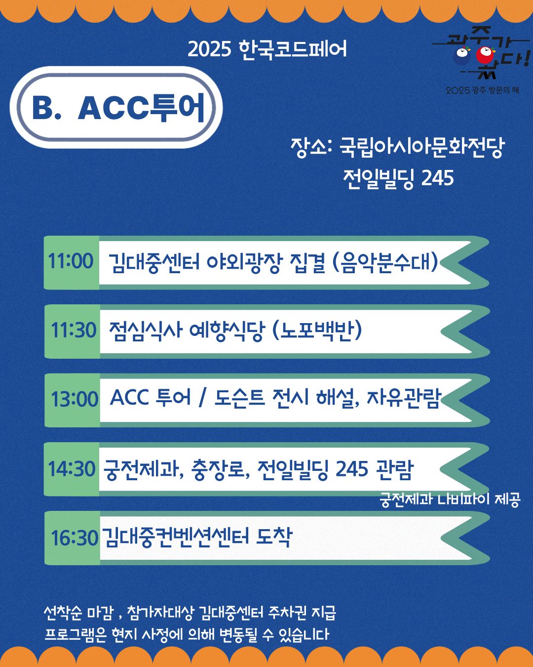 2025년 한국코드페어 공동주관사인 광주광역시에서 한국코드페어 본선 참가자 보호자분들을 대상으로 광주투어 프로그램 무료로 제공드립니다.